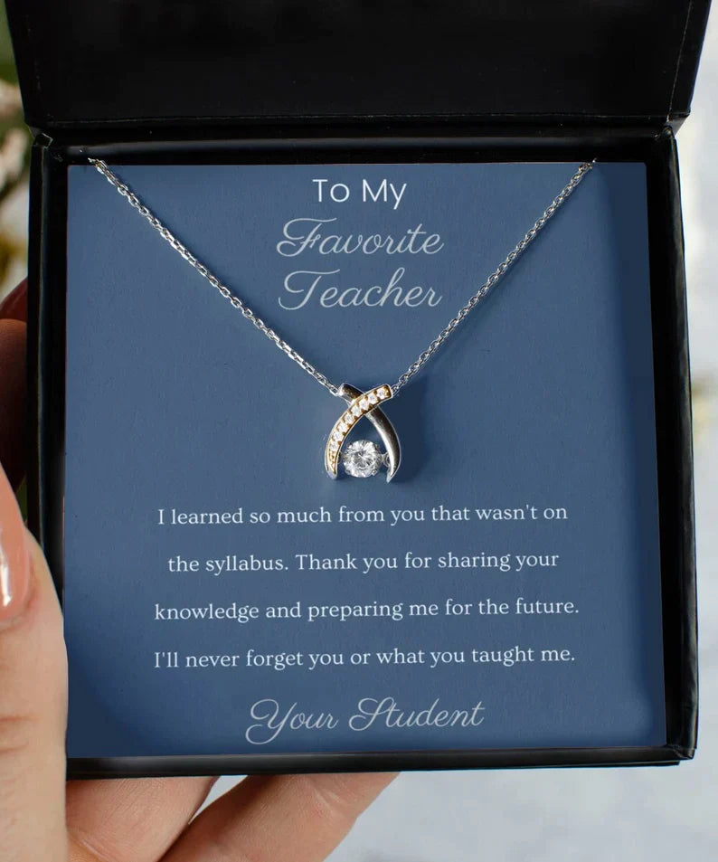 Special Gift To My Favourite Teacher - Wishbone Necklace